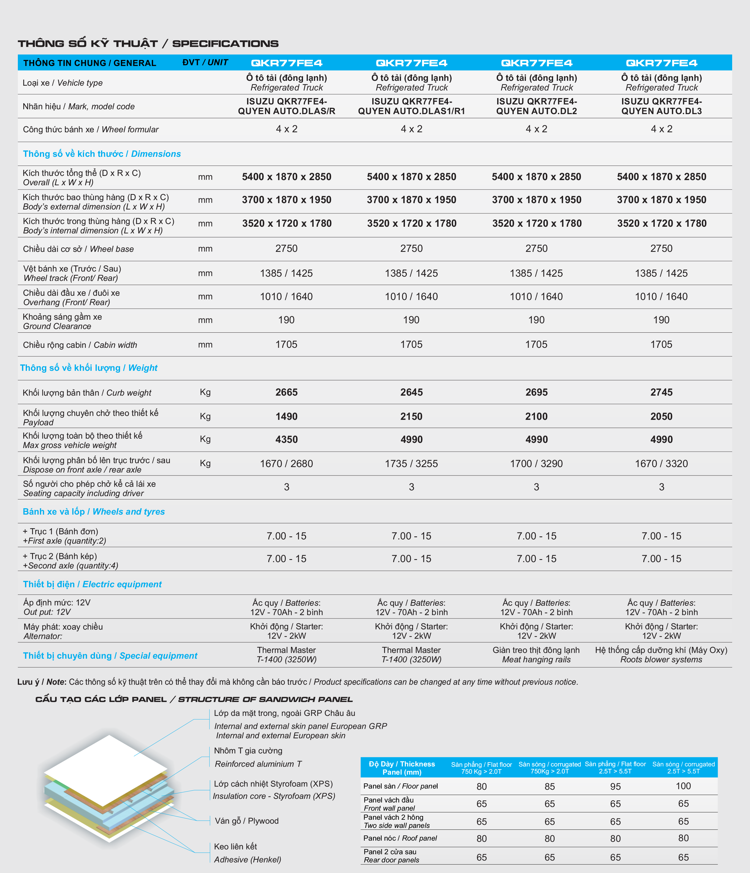 - Kích thước thùng: 4220 x 1720 x 1780 mm Độ lạnh: -18 độ C